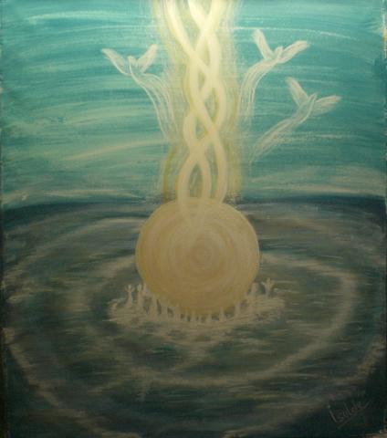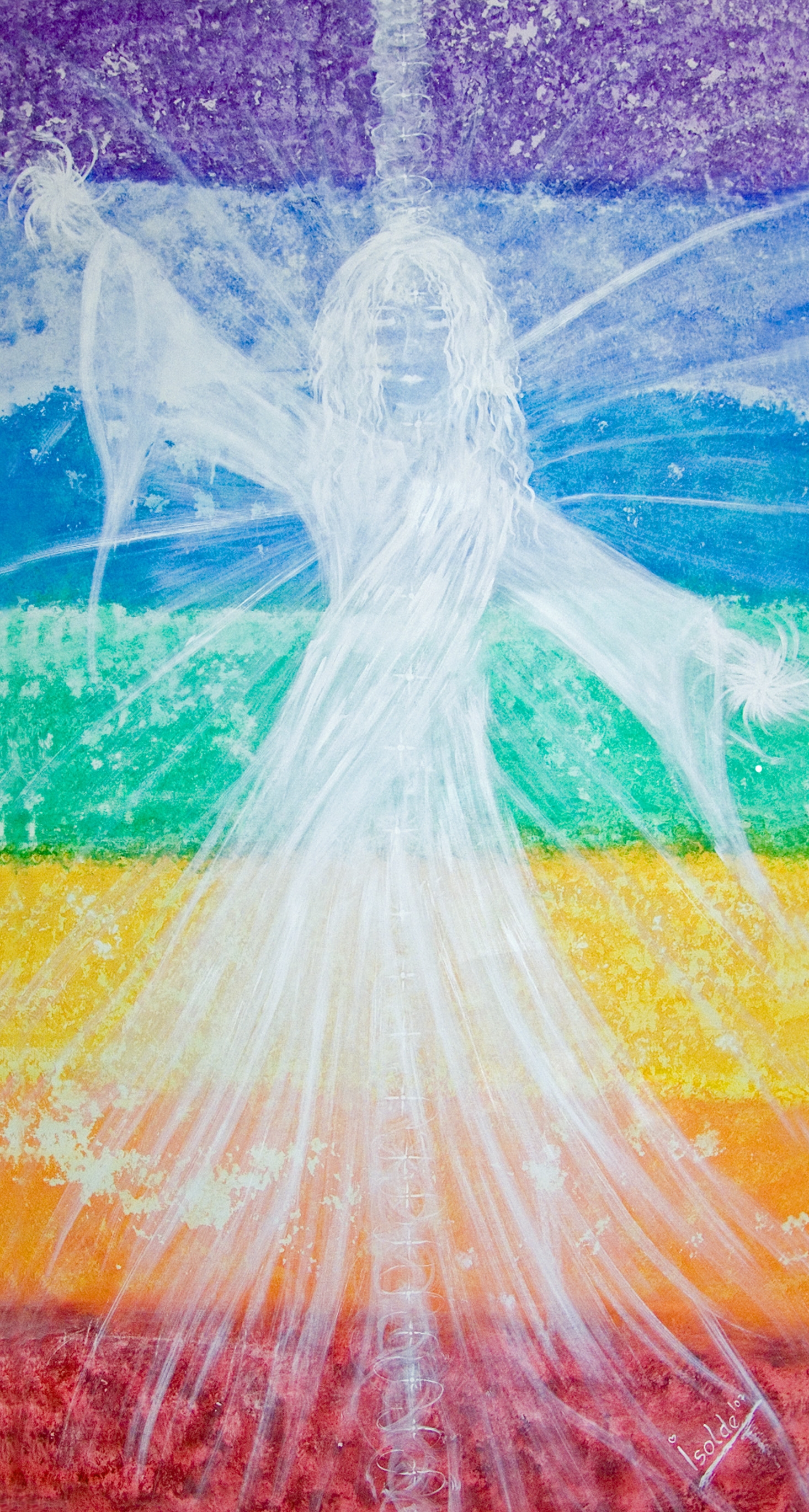 Göttliche Inspiration, gemalt im März 2006 * 130x100 Durch das Einfließen des göttlichen, klaren, weißen Lichts ... bis in unser Wurzelchakra